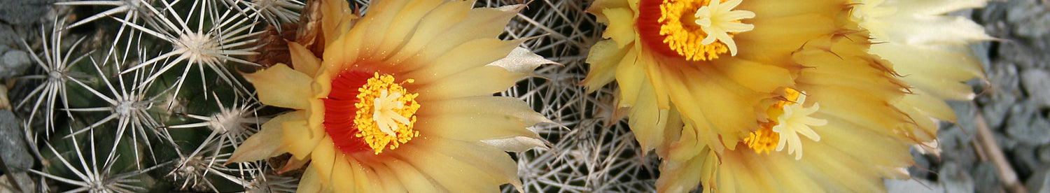 Coryphantha is a genus of small barrel cacti native to the arid regions of the Southen U.S. and Northern Mexico. Instead of ribs Coryphantha have grooved tubercles. The name comes from the Greek koryphe meaning crown and anthos meaning flower.