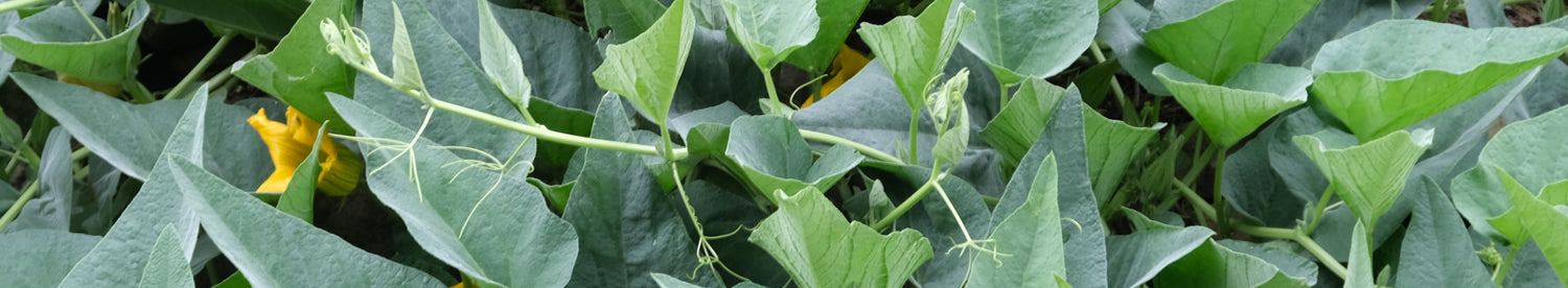 What if we told you there is a native gourd that's wonderfully ornamental, easy to grow, and perennial north to Zone 4? May we introduce you to the buffalo gourd? Native to deserts from Canada south to New Mexico, this amazing plant forms a 25' wide vine adorned with 1' long, hastate, sandpapery, glaucous leaves and an abundance of huge 4" wide, yellow-orange, chalice-shaped flowers that open in early morning. If the flowers are pollinated you'll also have a nice crop of small green-striped gourds in fall.