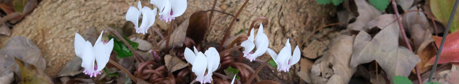 - Cyclamen (Hardy Cyclamen) - These small fall/winter growing perennials absolutely thrive in the shady, dry conditions found underneath large deciduous trees and conifers.