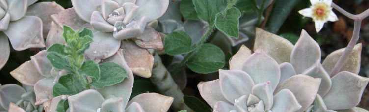 Most people consider succulents to be plants for extreme desert heat, but that is not always the case. Succulents like graptopetalum actually do not like intense heat and are found instead in cooler xeric locations such as on mountains. We grow graptopetalum primarily for its succulent rosettes atop short stems, but it also produces small, long-lasting, white flowers in summer.