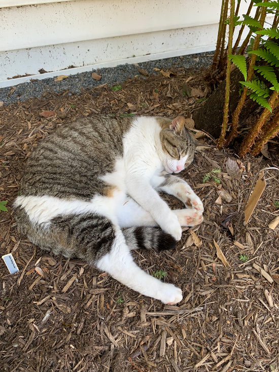 Not only do we grow plants, but we’ve even got room for a few non-plants. The nursery is protected 24/7 by members of "the PDN family." Yes, we’re talking about the real sopranos. If you’ve visited the gardens during open house and gardens, you have, no doubt, met some or all of our family of cats. Even if you didn’t see them, you can rest assured they had you in their sights.