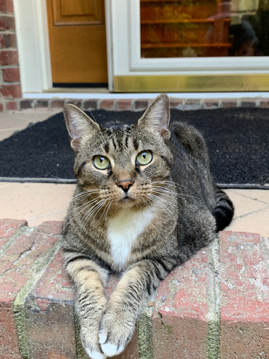 About: Jasper loves people and often hangs out with our staff and visitors. On warm days he is often found napping in one of the garden beds. Jasper is our most gregarious cat and if you call him by name he will come to you with his tail pointing straight up in the air.