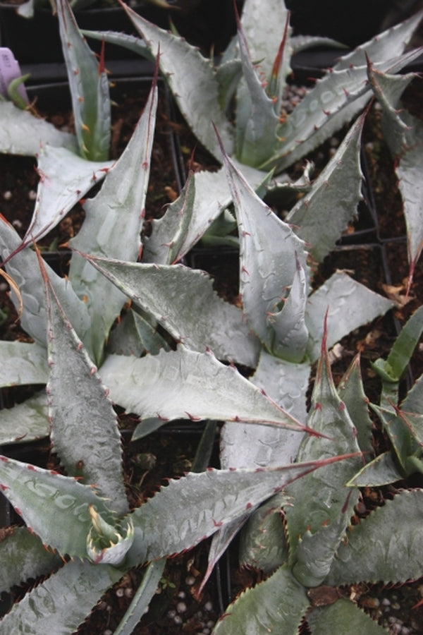 This collection of the lovely Agave chrysantha hails from 6,600' elevation in Arizona's Pinal Mountains, east of Phoenix. The solitary rosettes of grey-blue leaves make a 4' wide x 3' tall specimen.
