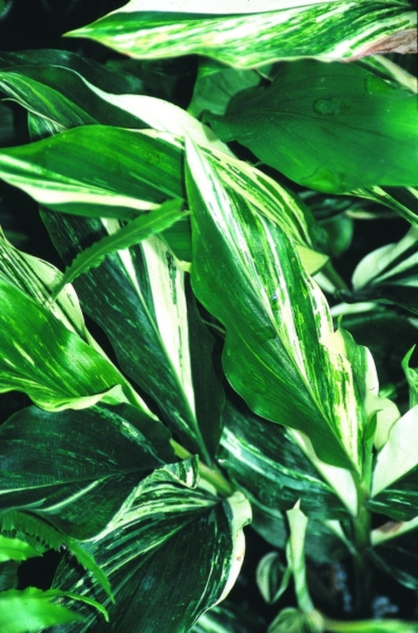 This wonderful Japanese selection of the hardy Alpinia japonica is no relation to any member of the 1990s English pop group. The upright, glossy green, 1' long, fragrant leaves are heavily splashed with creamy white, making an eye-catching addition to the woodland garden. Occasionally the clumps will throw an all-green division, which is more vigorous and should be removed. In spring, the clumps are topped with white flowers with red stripes on terminal spikes...stunning!
