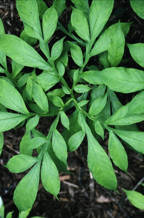 We are pleased to finally be able to release another of the winter-hardy voodoo lilies from Yunnan, China. A. yuloensis produces a 2' tall green stalk (occasionally with a few silver spots), topped with a large, deeply cut, tropical-looking leaf. The creamy flower is very similar to A. yunnanensis, except that A. yuloensis is perched on a shorter stalk (4") but is slightly more endowed in the length of its creamy "organ." After flowering, A. yuloensis produces a stunning stalk of blue fruit, equaling the beauty of the flower. A. yuloensis rarely offsets underground, but instead forms warty offsets on top of the leaf in the manner of A. bulbifer...except they are more flattened. This is a clone from Florida aroid collector Dewey Fisk.