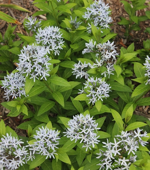 We love blue stars, and are excited to have introduced Amsonia 'Short Stack' in 2003, selected from a batch of seedlings in the 1980s. We have offered Amsonia 'Short Stack' as a selection of Amsonia "montana", which appears to be a non-valid name which first appeared in 1977 in Buckley's 1977 Canadian Garden Perennials, for what may be a dwarf form of Amsonia tabernaemontana. Amsonia 'Short Stack' is happy in our rock garden where its dwarf, 10" tall x 18" wide, perfectly rounded form has been superb. The clean, dark green, deer-resistant foliage contrasts nicely with the medium sky-blue flowers that top the plant in early April...a real winner!