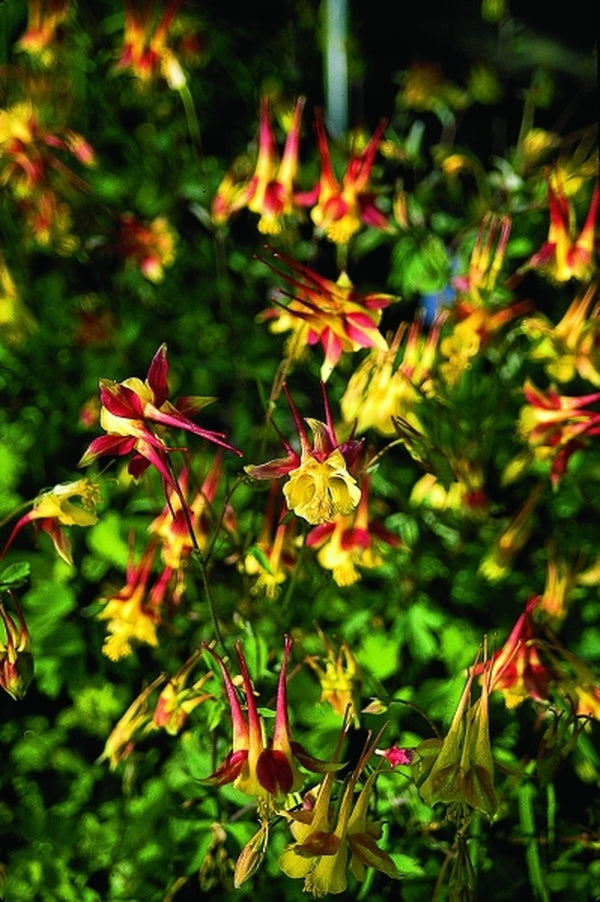 This exciting new introduction, after a decade of breeding by Texas plant guru, Greg Grant, is a seed strain derived from a series of crosses between the southern US natives, A. canadensis and A. chrysantha var. hinkleyana 'Texas Gold'. The result is an extremely heat tolerant columbine with the larger size of A. chrysantha, but with the red and yellow coloration found in A. canadensis.