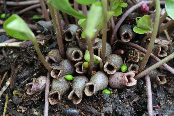 Asarum arifolium 'Anise Arrow' is a 2020 Plant Delights/JLBG introduction of our selection of the southeast US native Asarum arifolium. We found this on a 2006 botanizing expedition in St. Clair County, Alabama, where it grew alongside Trillium decumbens and hepatica. In our garden, this clumping selection stood out for its vigor, leaf pattern, and dense growth. Having seen tens of thousands of this species in the wild, any clone we find worthy of introduction needs to be very special. The evergreen arrow-shaped, anise-scented leaves are mostly silver with a narrow green edge and green central pattern. In late winter, the small, pinky-sized flowers cluster just beneath the leaves. Asarum 'Anise Arrow' is superb for the woodland garden in soils that range from slightly moist to fairly dry.