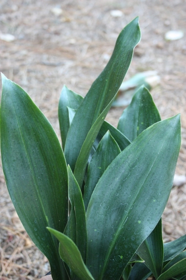 We are pleased to once again offer the rare Chinese aspidistra, Aspidistra molendinacea, first published in 2002 from Guangxi, China. This is one of the slowest growing cast iron plant species in our collection, so supplies are always limited. Our clone of Aspidistra molendinacea has been fine in our Zone 7b garden since 2008, where it produces very thick 20" long, rigidly upright leaves that include a 6" basal stem. The shiny green leaves are faintly spotted yellow.