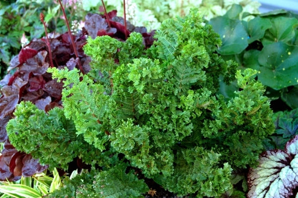 This new introduction from Terra Nova Nurseries is a cloned selection of dwarf crested lady fern, Athyrium filix-femina. The slow-growing, compact, deciduous clump resembles a patch of parsley more than a fern, but no snacking...please! Eventually, Athyrium 'Lady in Lace' will make a 1' tall x 1' wide clump, but that will take a few years. We hope you will enjoy this cute little treasure!