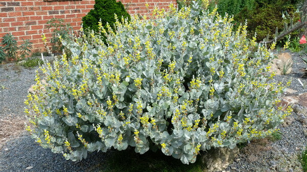 Baptisia arachnifera is the most unique member of the genus. Each 2' tall x 5' wide clump is adorned with clasping, silvery-grey, eucalyptus-like, hairy leaves. Baptisia arachnifera is a compact grower for a special spot in the rock garden and is topped with short terminal spikes of yellow flowers, starting for us in early July...long after most other baptisias have finished flowering. Baptisia arachnifera is also late to emerge in spring, so don't get worried when it's not the first thing out of the ground. Despite being nursery propagated from seed here at Plant Delights, this federally endangered, coastal Georgia native cannot be shipped outside of NC due to misguided Federal regulations, so you'll have to visit and pick yours up in person.
