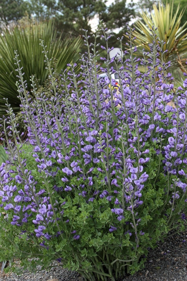 (syn: Baptisia australis var. minor A1T-002) If you have only grown Baptisia australis, then you've missed one of the best blue-flowered members of the genus Baptisia. Baptisia minor is its little-known cousin that's actually superior to Baptisia australis in garden value. Take a Baptisia australis and shrink the leaves and plant by about half, attach an 18-24" flower spike atop the clump, which is loaded with blue-lavender flowers from mid-April until early May, and you have Baptisia minor. In summer, the enormous black pods add garden interest as they cling to the sturdy old flower spikes. This offering is a seed strain from an excellently flowering form we selected from our original wild seed collection in Melissa, just north of Dallas, TX.