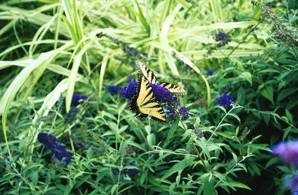 This is the darkest-flowered of all the buddleias, almost a grape-violet, and always one of the most popular...awesome in front of gold-foliaged plants. The smaller foliage and shorter stature give Buddleia 'Black Knight' the effect of being more graceful and airy.