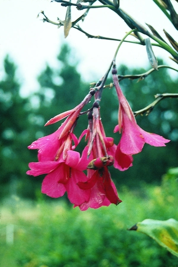 This selection of C. iridiflora, first introduced in 1863, is quite different from other cannas in the trade. The large, cherry-red flowers on the 8-foot giant are held on arching pendulous spikes. We have found this to be a great, back-of-the-border choice due to its size, color, and floriferousness. C. 'Ehemanni' has long been a crowd favorite at open house, so we have sacrificed our clump to our propagator, Lizzie Borden...the result is finally available!