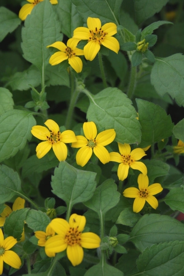 This selection of the US native (NY south to FL) green and gold was made in England by Geranium specialist Carl Lowe and then re-imported back to the US. The rosette of green deer resistant leaves is topped starting in April with 6" tall upright stalks of 1" dark yellow daisies. The new leaves are much larger than any selections that we have previously grown and this selection reportedly flowers consistently until September...we'll see, but regardless, it's a superb species.