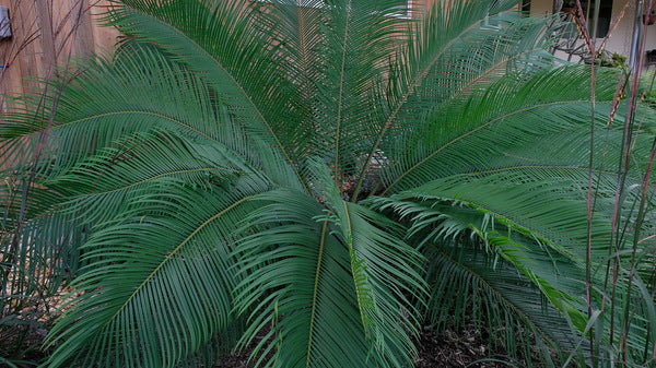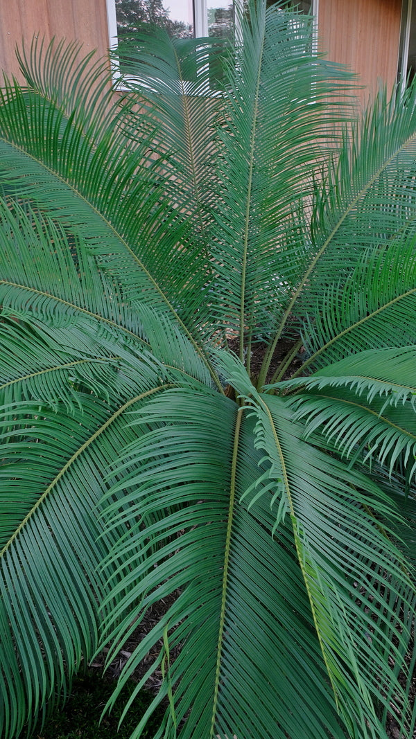 Cycas x panzhioluta is a rarely available hybrid of two winter hardy cycads, Cycas revoluta x Cycas panzhihuaensis. Our plant has been in the ground since 2014, forming a stunning 4' tall x 7' wide specimen with 6' long dark green fronds. In our trials, Cycas x panzhioluta has proven faster growing and more winter hardy than either parent species. Our offering of this superb hybrid is from a cross made by cycad expert Garrie Landry.