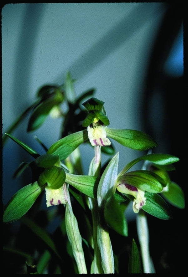I recall first seeing this plant in the wild in Korea and thinking that it looked just like a liriope. It has long been cultivated in both Korea and Japan as a highly prized potted specimen. We are delighted to finally offer nursery-propagated plants for gardeners in the US. The stiff, narrow green leaves make a small clump, topped in spring with 10" spikes of miniature yellow-green cymbidium orchid flowers. The acidic soil must be well-drained, so the addition of a gravel-like material is recommended.
