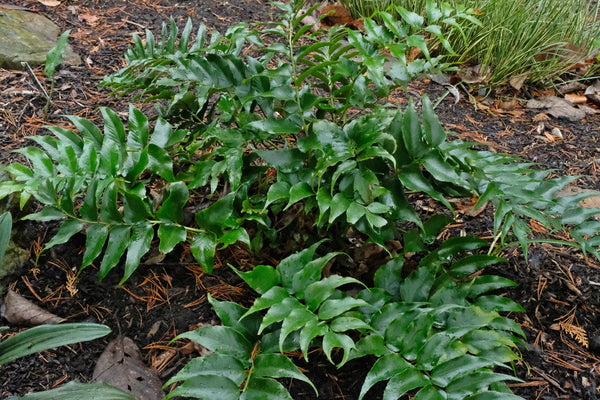 Cyrtomium 'Plasticity' is a 2011 Plant Delights/JLBG introduction of plant I spotted back in 2008, walking through the temperate house at the Missouri Botanic Garden. My eye was drawn to an obviously odd holly fern in the midst of a mass planting of Cyrtomium falcatum. Upon feeling up the foliage (still legal in Missouri at the time), it was obvious the ploidy (the number of chromosomes) was higher than normal. Instead of feeling like a normal holly fern leaf, the foliage felt like thick plastic. The garden was kind enough to share spores which subsequently reproduced plants virtually identical to the parent, so we christened it Cyrtomium 'Plasticity'. The plant size and shape is similar to the species...around 1' tall x 2' wide.