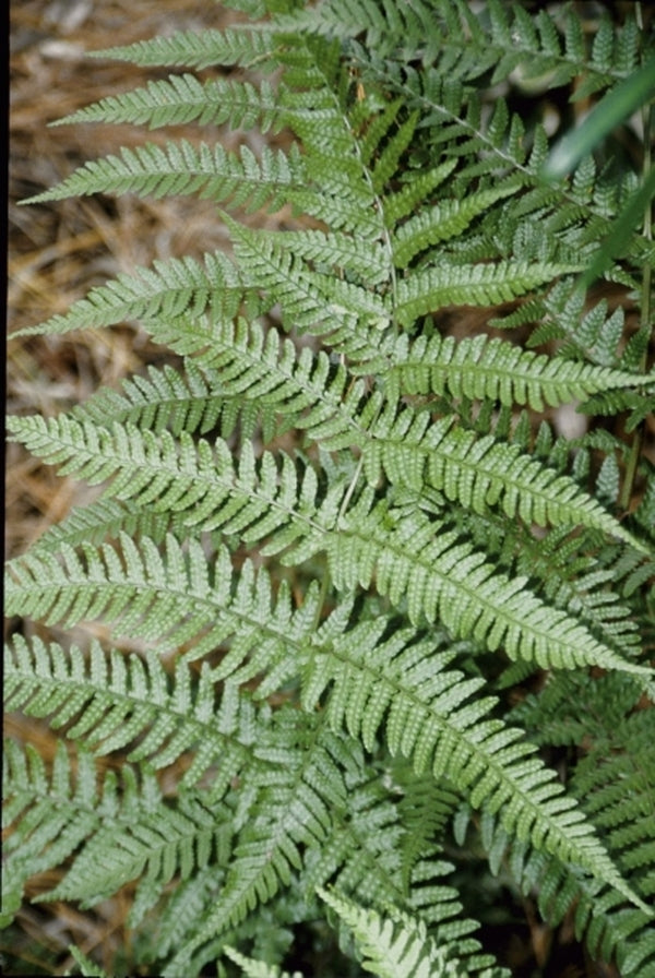 This little known and seldom grown evergreen Asian native hails from broadleaf evergreen, subtropical forests in Southern China and Japan. Dryopteris indusiata has proven to be a great, tough addition to the woodland garden. Our 9-year-old evergreen clumps matured at 18" tall x 30" wide with very sturdy, dark green fronds...closely related to Dryopteris erythrosora.