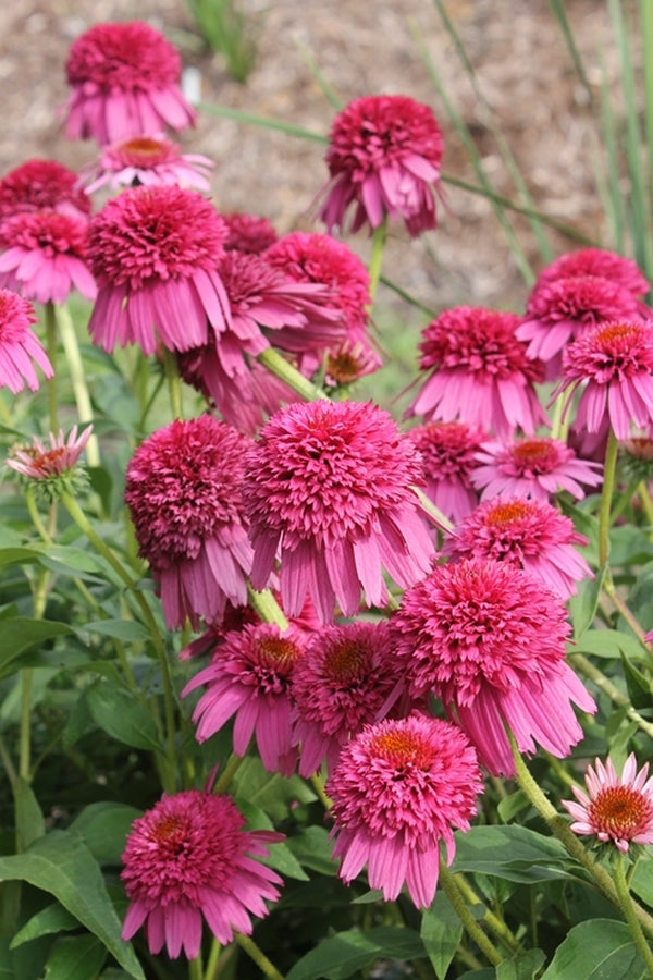 Echinacea 'Secret Affair' from Terra Nova takes double pink coneflowers to a whole new level. In our garden trials, Echinacea 'Secret Affair' makes a superb show with masses of double, dark pink flowers atop sturdy 2' tall stems. As with all coneflowers, well-drained soil and an early season planting are the keys to success.