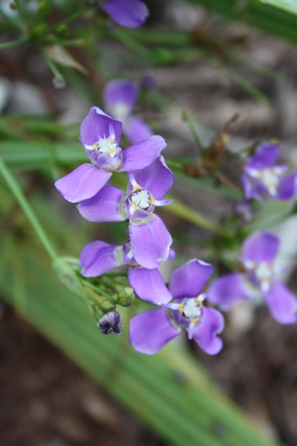 This small iris relative is from the Northern Argentine provinces of Jujuy and Salta. The 10" tall clumps are composed of narrow miniature iris-like leaves, and topped for several months during the summer with small mauvy-lavender flowers composed of three falls surrounding a small purple cup. These have proven remarkably easy to grow and reliably winter-hardy in our climate. Full to partially sunny, well drained soils seem to be the trick.