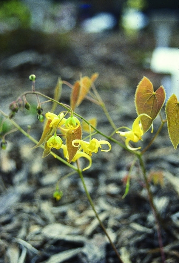 This easy-to-grow species from China's Hubei Province is very rare in cultivation but similar in form to Epimedium franchetii. The 1' tall clumps of bold evergreen foliage are topped in mid-spring with sprays of nice 1" wide, yellow, spider-like flowers. Most clones have some bronze tinting in the spring foliage that adds to the garden interest.