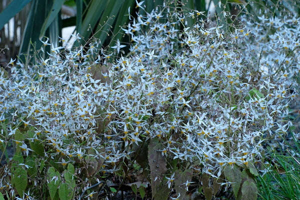 In 2020, Plant Delights/JLBG introduced a 2003 Hans Hansen collection of Epimedium pubescens from Guangyuan at 4,500' elevation in Sichuan Province, China. This shorter than typical form produces a 10" tall x 3' wide patch, whose evergreen foliage remains looking great through the winter. The new growth which emerges alongside the flowers in mid-March (NC) is mottled reddish bronze, but is nearly obscured by the masses of small white flowers. You'll love this amazing burst of spring in your woodland garden.