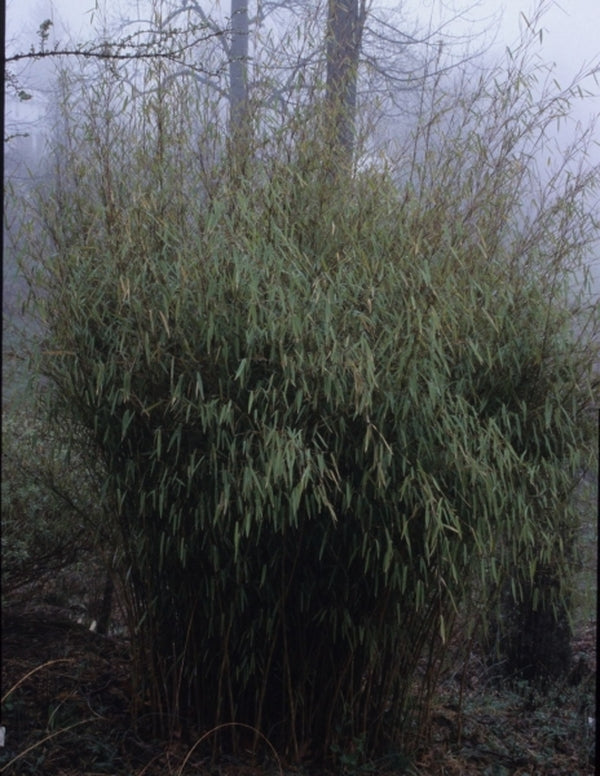 This high-elevation Chinese species of clumping bamboo was discovered by famed plant explorer Ernest (Chinese) Wilson in 1907, and he subsequently named it after his daughter, Muriel. The graceful, 10' tall clumps are composed of narrow foliage on long, arching stems, making it a perfect foil for a water feature. Our offering represents the new generation of seed-grown F. murielae.