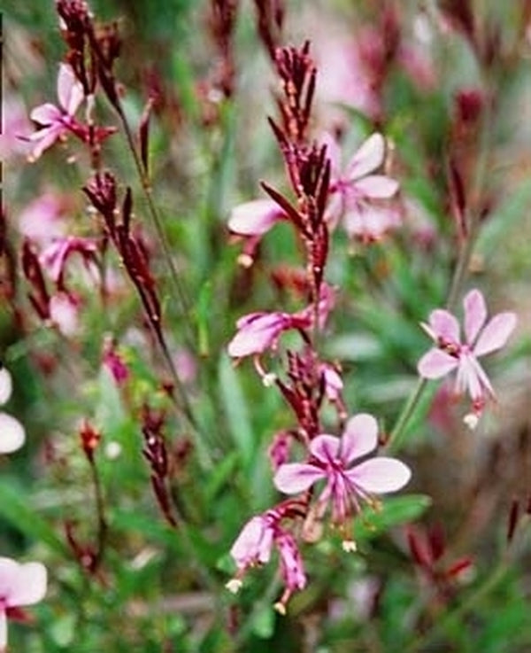 This exciting new dwarf gaura from Howard Bentley of Australia is essentially a dwarf compact version of G. 'Siskiyou Pink'. Each 2' wide clump is topped from early summer until frost with beautiful soft pink "butterfly-like" flowers. Find a hot dry site and let gaura do its thing.