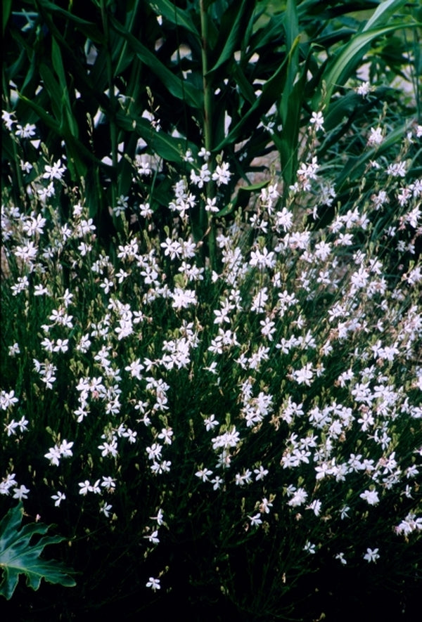 Gaura 'Walsnofou' is the latest gaura from the work of UK breeder David Tristam. Despite the really bad cultivar name, G. 'Walsnofou' has been a standout in our trials. G. 'Walsnofou' forms a woody base, making it more reliably perennial that any gaura that we have trialed. 2-year-old specimens form a compact but large clump to 3' tall x 5' wide (including flower spikes). The clumps are topped from May through September with spikes of white, butterfly-shaped flowers. Good drainage is important for all gauras to be reliably perennial.
