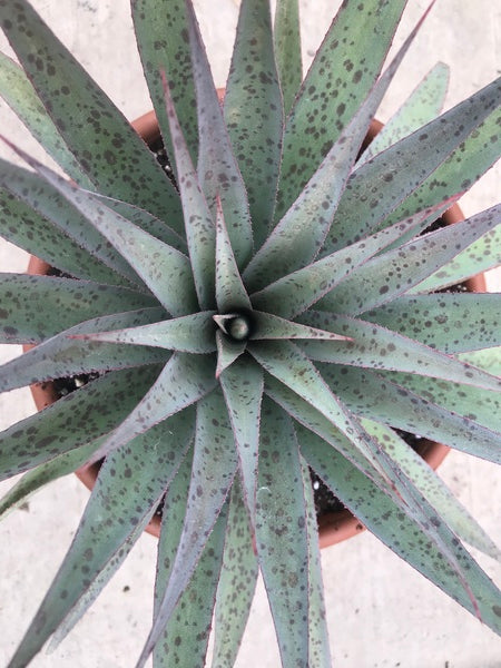 Here's a new one for even the most seasoned plant nerds. xHansara, named after our friend and mangave breeder Hans Hansen, is the first ever released tri-generic hybrid between Agave, Manfreda, and Polianthes (tuberose). xHansara 'Jumping Jacks' combines the genes of Agave gypsophila ssp. pablocarrilloi, Agave macroacantha, Manfreda maculosa, Polianthes tuberosa, and Polianthes howardii...whew, just thinking about all that sex makes me tired. xHansara 'Jumping Jacks' forms a 14" tall x 27" wide clump of narrow, succulent, grey-green foliage, sparsely spotted purple. When mature, which should take 2-3 years, expect a 6' tall, highly branched flower spike of lovely yellow flowers, but with an insignificant fragrance. Be sure to check both your state regulations and HOA covenants to make sure an outdoor menage-a-trois is permissible.