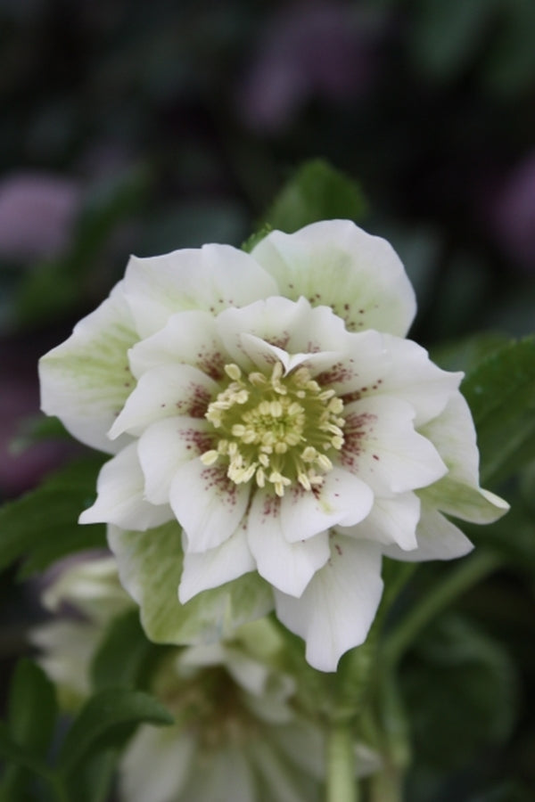 This strain of lenten rose produces creamy double flowers, highlighted by small central purple dots...very unique!