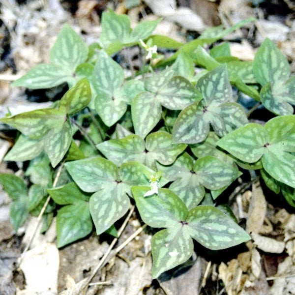 Finally, we have enough to offer of this great native woodlander that can be found from Canada south to Georgia. This 4" tall x 8" wide clumper has thick clover-shaped foliage, appearing similar to a cutleaf asarum. The foliage on many clones is attractively mottled with muted silver patterns. In a hot, dry summer the foliage may go dormant in mid-to-late summer. Hepatica acutiloba prefers a well-drained to dry woodland site. The tiny flowers, which range from white to blue, appear on 6" stalks in early spring...extremely cute! Our offerings are nursery-propagated from seed which takes about as long as waiting for Paris Hilton to make an intelligent statement...okay, maybe not quite that long.