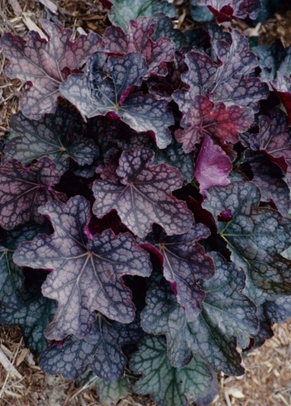 The foliage on this Dan Heims selection is dark purple with red veining, giving the appearance of crushed velvet overlay...I don't know how he did it! H. 'Velvet Knight' is striking near blue-foliaged hostas. When established, the 18" wide clump will have 7" wide leaves!
