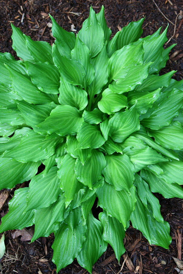 Hosta 'Contortionist' is a unique 2020 Plant Delights/JLBG introduction with glossy green wavy leaves, each of which ends with a unique twisted tip...probably due to its twisted and promiscuous sexual history involving rendevous with H. yingeri, H. venusta, H. 'Sun Power', H. 'Salute', H. 'Elvis Lives', and H. 'Maekawa'. The small 8" tall x 18" wide clump is sure to be a standout in the woodland garden. The stalks of light lavender, well-spaced flowers top the clump for us in early August.