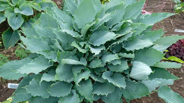 Hosta 'Deep Sea Dive' is a 2023 Plant Delights/JLBG introduction of a Hans Hansen creation, that came about from a rendezvous involving Hosta 'Neptune and 'Queen of the Seas'. The amazing Hosta 'Deep Sea Dive' is the best blue-leaf rippled hosta we've ever seen. The 2' tall x 6' wide clump is a thing of beauty, with intensely rippled powder blue leaves on a somewhat upright vase-shaped plant. The clumps are topped with 40" tall flower scapes in summer.