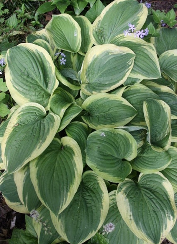 Named after the late Diana, Princess of Wales, I put this near the top of the "best-ever" list. This vigorous Hosta plantaginea hybrid makes a stunning, 3' wide clump of shiny, blue-green leaves with a very wide, creamy yellow border. In late summer, clumps of Hosta 'Diana Remembered' are topped with 2' tall spikes bearing very fragrant, white flowers...a hummingbird favorite. Plant this one near a path where it can be truly appreciated!