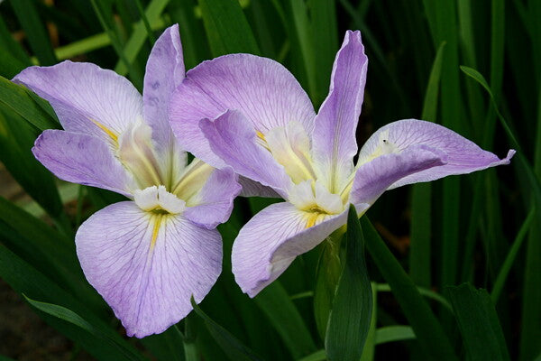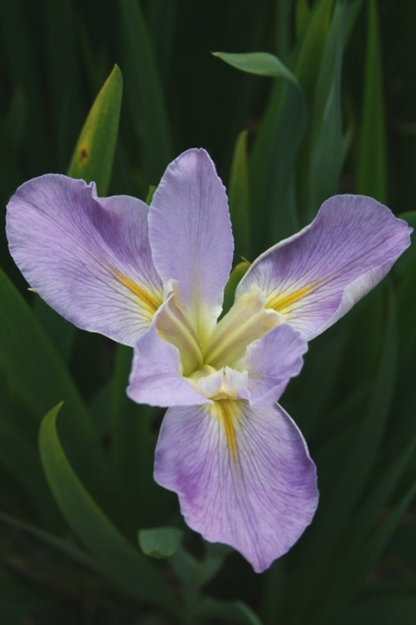This deer-resistant, 1980 tetraploid Louisiana iris introduction forms a robust, 3' tall clump of vertical green leaves topped, starting in mid-May, with large, 5", light lavender-blue flowers...a hummingbird treat. Iris 'Professor Paul' is equally happy planted in moist soils or 4" of standing water.