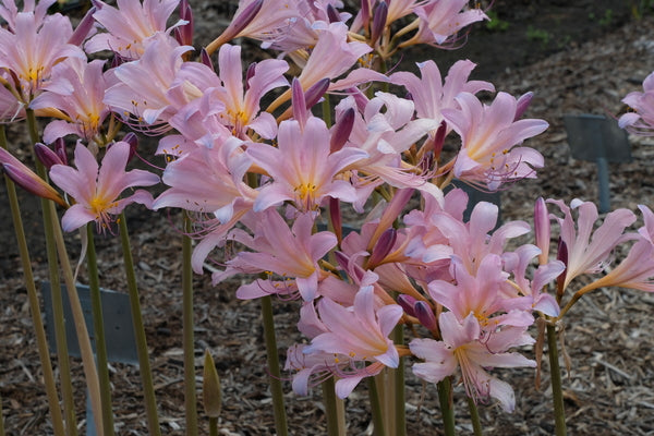 Lycoris x squamigera is the most well-known and easiest-to-grow of the surprise lilies, but one whose background is mysterious since it has never been seen in the wild. Recent DNA work shows it is a sterile hybrid between Lycoris sprengeri and Lycoris longituba. The robust, 24" tall, "nekkid" scapes emerge from dormancy in late summer, topped with large, clear pink, outward-facing flowers. Lycoris x squamigera is great mixed into the border for a summer change or naturalized in the deciduous woodland garden. After flowering, the grey-green, strap-like foliage emerges to produce energy for next year's flowers. Lycoris x squamigera is a long-lived and durable deer-resistant bulb for a wide range of garden soils and sites. Lycoris x squamigera does require a cold winter to flower, so don't bother planting this in the Deep South unless you enjoy it for the foliage. Conversely, if you're growing something labeled "Amaryllis belladonna" north of Zone 8, change your tags.