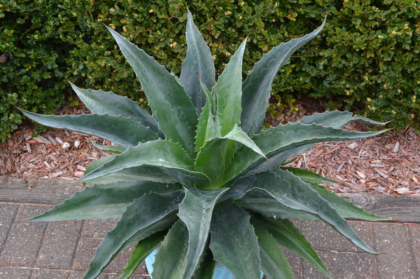 xMangave 'Iron Man' is a 2018 Walters Gardens release that involves genes from the Mexican Agave pablocarrilloi and Agave montana, combined with the Texas Manfreda maculosa. xMangave 'Iron Man' forms a 20" tall x 4' wide clump of grey-green, nice bud-imprinted leaves that in form resemble Agave salmiana var. ferox, except for being much faster growing and teeth made from rubber instead of sharp spines.
