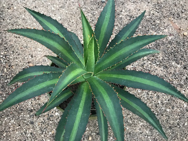 xMangave 'Racing Stripes' is a 2018 introduction and a new look in the Walters Gardens Mad about Mangave series. By combining Agave lophantha and Agave pablocarrilloi with Manfreda maculosa, breeder Hans Hansen has created a lovely dwarf 8" tall x 14" wide, with long, beautifully toothed, wavy green leaves, each highlighted by a central chartreuse band. xMangave 'Racing Stripes' forms a few offsets close to the parent clump. Our plants came through 11 degrees F in great shape.