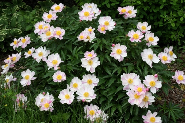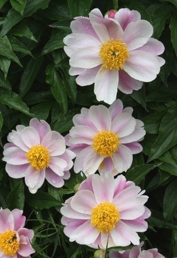 We are very pleased to offer wild Paeonia lactiflora, the Asian native peony species from which most of the modern hybrids are derived. Paeonia lactiflora can be found naturally from 1,000'-7,000' elevation in China, Korea, Mongolia, and Russia. For us, Paeonia lactiflora makes a stunning plant in our garden with large numbers of single pink flowers highlighted by a large central ball of yellow stamens, starting in late April (NC). Our offerings are Chinese genetics.