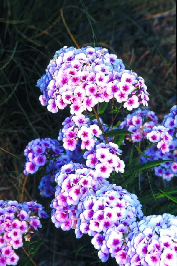 We were amazed and delighted at the performance of this hybrid of two US natives, P. divaricata and P. paniculata. The result, from Holland's Verschoor Nursery, makes a sturdy, 18" upright clump, topped in midsummer with lovely, branched flower heads of light pink with a darker reddish center. Sellers listing this as white obviously haven't actually grown the plant. We have also found this to be much less mildew-prone than many of the earlier P. x arendsii types. We rank this a superb addition to the list of top garden phlox.