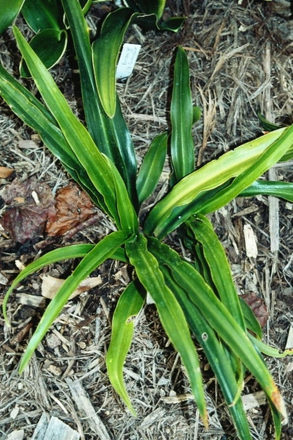 (aka: R. 'Tyokkwina') From the late Fred Galle, via the US National Arboretum (USNA #39665), comes this vigorous cultivar of the evergreen sacred lily. The much narrower than normal, boat-shaped, dark green leaves (18" long x 1" wide) make an arching clump similar to a hosta. As with the species, this rare evergreen perennial makes a great winter interest plant for the woodland...one of the collector plants of great value in Japan.