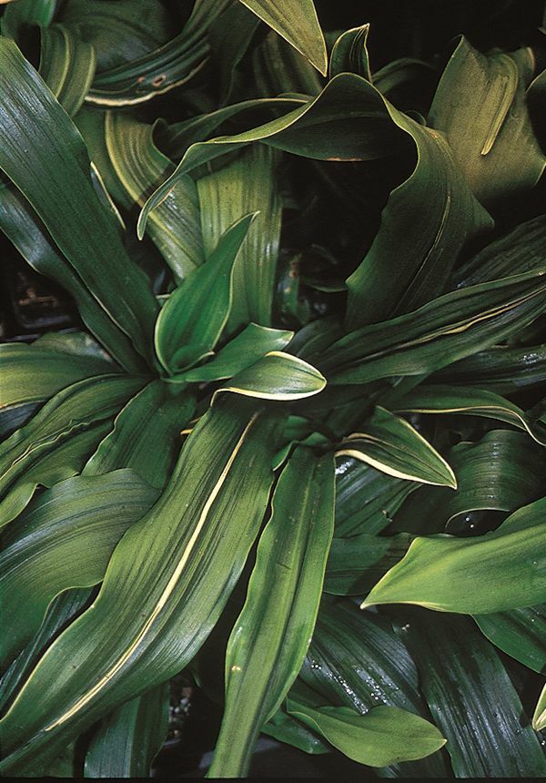 Always a customer favorite, Rohdea 'Suncrest' forms a rosette of thick, black-green leaves that arch outward. Rohdea 'Suncrest' features the highly sought-after, white, raised "dragon crest" (distorted leaf growth) that runs down the center of each leaf. Established clumps of this easy-to-grow evergreen perennial will be adorned with short stems of bright red berries in winter.