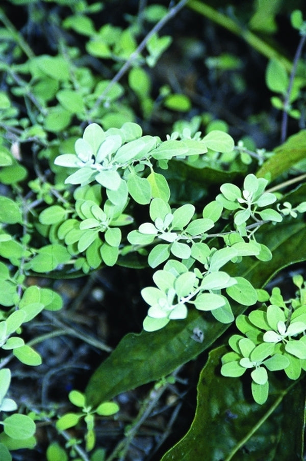 This superb Chihuahuan Desert native and relative of the wonderful blue oak sage (Salvia chamaedryoides) is certainly the most vertically challenged sage that we grow. In fact, it is one of the best evergreen groundcovers that we have in our garden. The creeping stems are adorned with bright silver foliage that can spread up to 6' per year, appearing from a distance as though the ground is sprinkled with snow. Unlike many silver-leaf plants, it has thrived in our humid NC summers. In spring and fall, the stems are also home to small blue flowers, but the beauty is certainly in the foliage. Salvia chionophylla also makes a great hanging basket plant for summer displays.