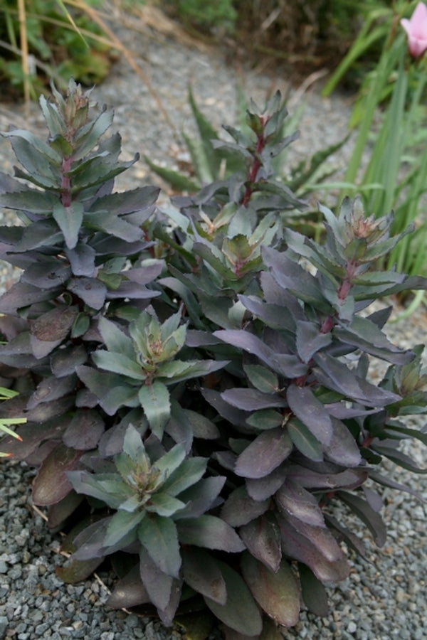 Sedum 'Jose Aubergine' comes from plantsman Jose De Buck, chairman of the Flemish Perennials Association. Sedum 'Jose Aubergine' is named for the foliage which resembles an aubergine (eggplant). The 20" tall compact plants are composed of greenish purple foliage and topped in early fall with flower heads of bright pink flowers. Sedum 'Jose Aubergine' is the winner of the Silver Medal at the European Plantarium Show.