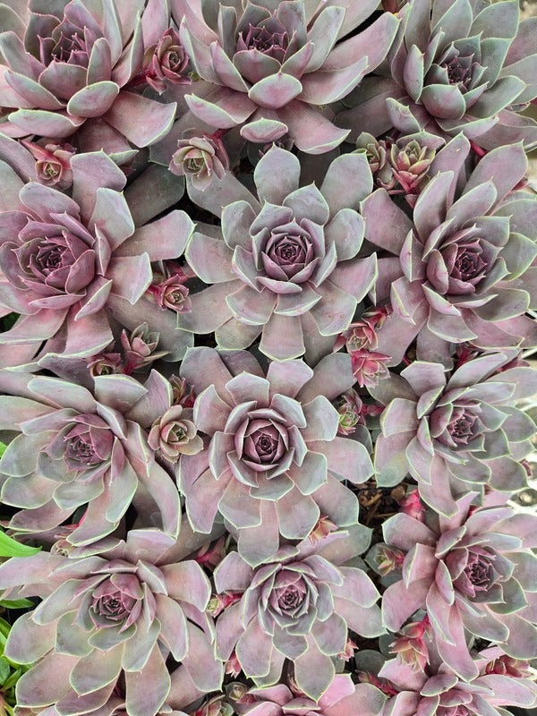 Sempervivum 'Steel Appeal' forms massive 6"+ rosettes of bright red, with the outer 1/3 of the leaf tip sporting a contrasting olive grey. You're sure you'll agree that this Kevin Vaughn creation selection quite dramatic.