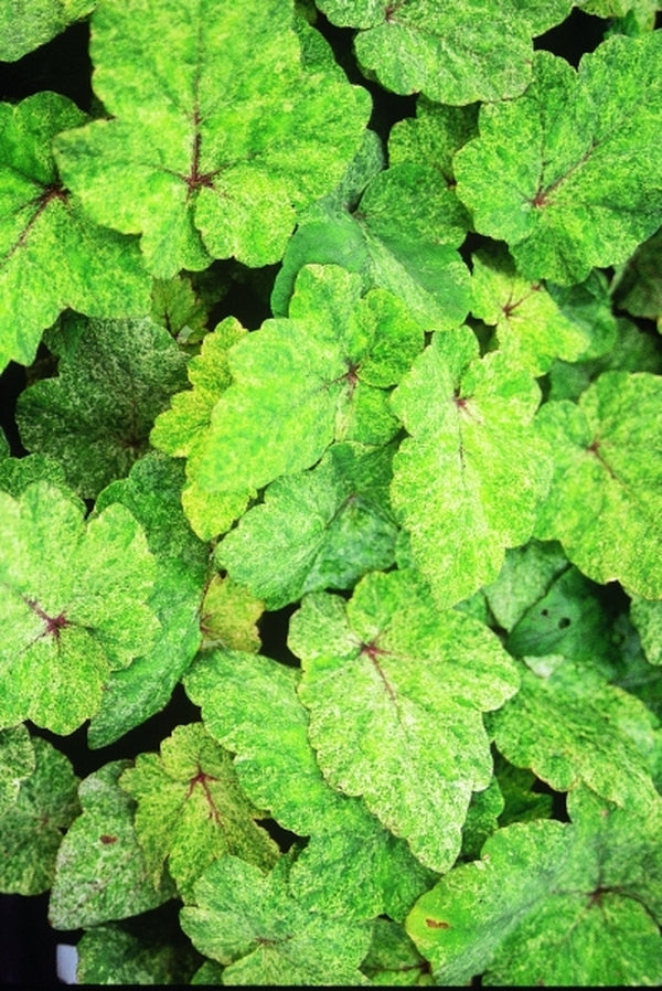 From seed grown from a Dan Hinkley collecting trip to Yunnan, China, comes this really cool new foam flower...yes, I know you thought you had seen them all. Instead of having the normal green foliage, each fuzzy leaf is heavily dusted with a cream frosting...like a green leaf decorated with one of Martha Stewart's famed faux patinas. As the nights cool, the foliage takes on pink overtones, which add to the uniqueness. In spring, each clump is topped with the typical bottlebrush-looking white flowers.