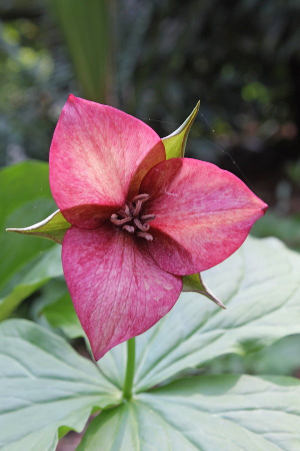 This offering from the hybrid swarm of Trillium x flexatum (Trillium flexipes x Trillium sulcatum) are selected dark pink flowered forms. These are 8-year-old, seed-grown, nursery-propagated plants, which all flowered last year. Each seedling will be slightly different, and quantities are very limited, so don't delay.
